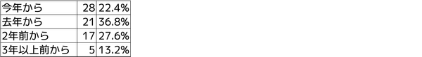 大多数の86.8%が直近3年ごろとの回答でした。まだまだ自治体側の対応が追いついていない印象もありますが、今後増加していくことを期待します。