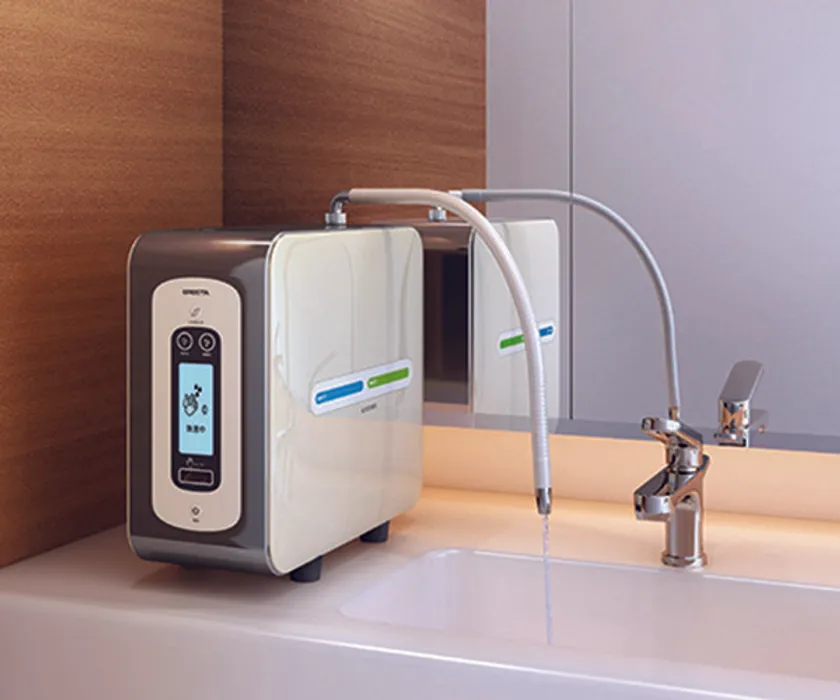 独自の3槽構造により、生成された水には不純物が混じらないため、手に優しい。