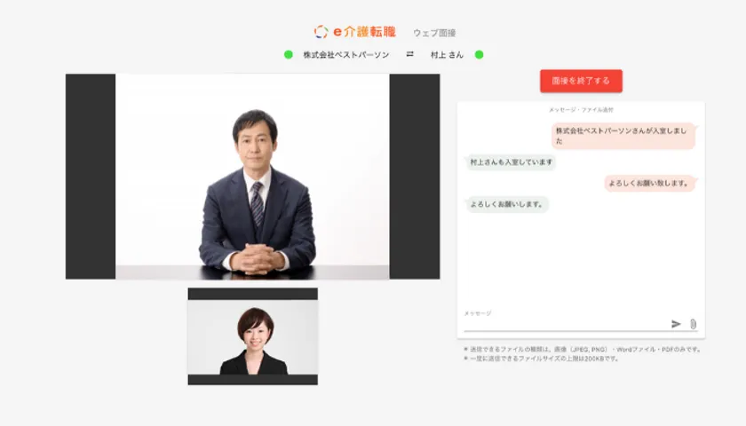 チャット機能が搭載されていますので、面接中での履歴書や資料の送付も可能です。