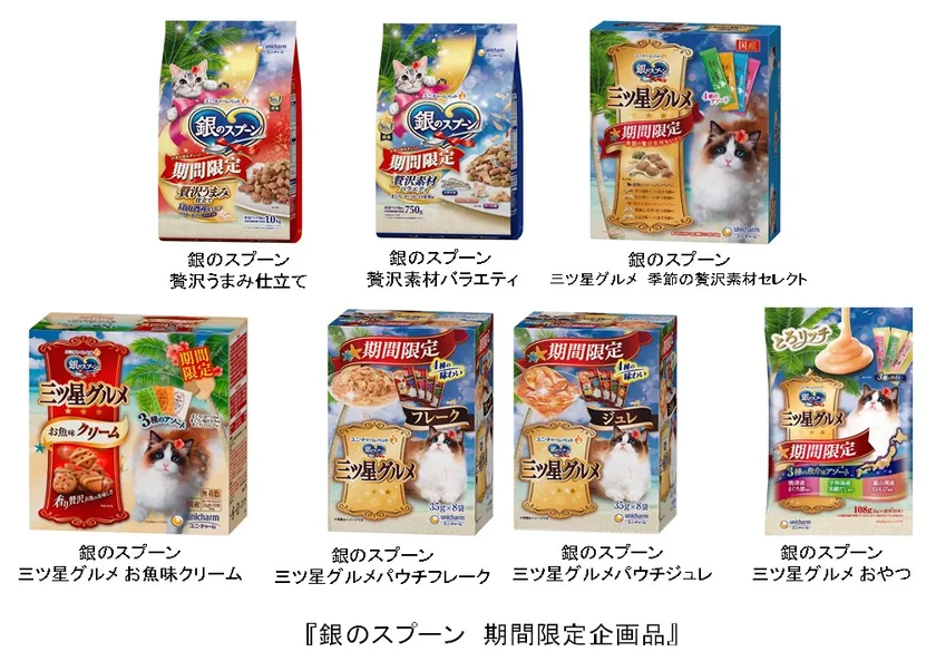 ユニ・チャーム株式会社(本社:東京都港区、代表取締役 社長執行役員:高原豪久)は、猫用フード『銀のスプーン』シリーズから、期間限定のフレーバーや、一袋で複数の味が楽しめるアソートタイプを2020年5月18日より全国で限定発売します。