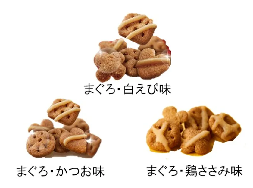 まぐろ・かつお・白身魚味に天然小魚・白えび味フレーク・かつお節添え