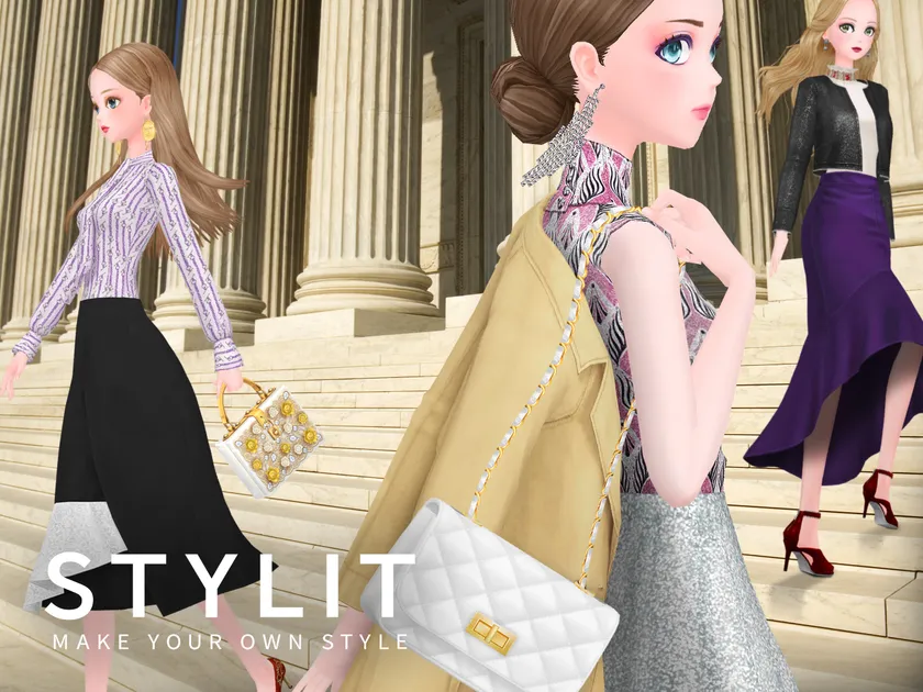 『スタイリット』は、3Dキャラクターを臨場感あふれる衣装で自由にコーディネートしながら、世界中のユーザーと一緒に楽しむスマートフォン向けの3D着せ替えゲームで、基本無料でお届けいたします。