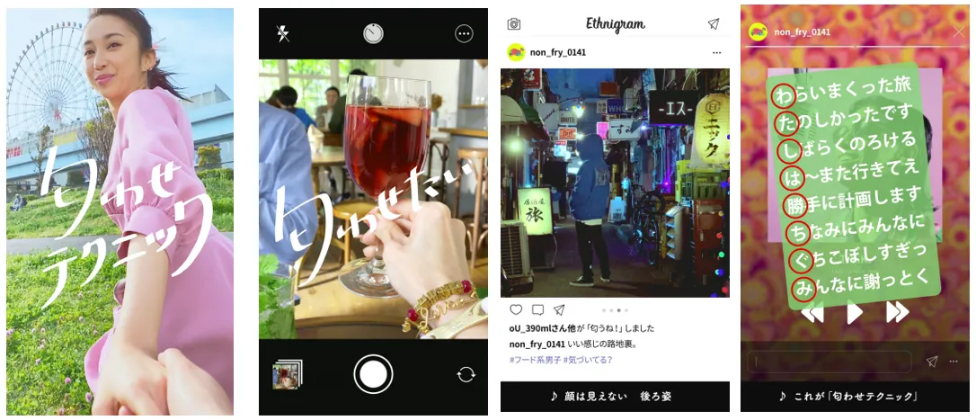 この 「日清旅するエスニック」 シリーズをより多くの方に知ってもらうために、「日清旅するエスニック」 の食欲をそそる “匂い” と、SNSでさりげなく異性の存在をちらつかせる “匂わせ” をかけたオリジナルMV 「匂わせたい」 を制作しました。