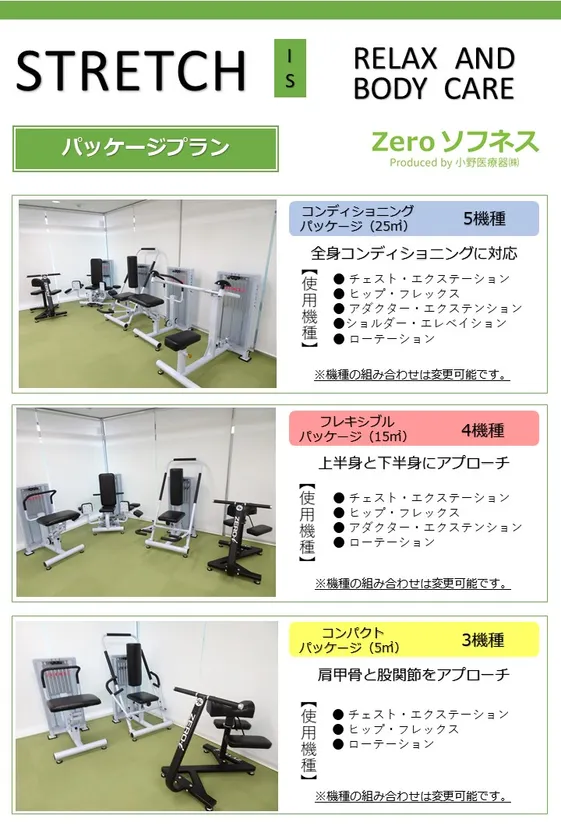 医療・福祉・健康事業の商品販売、レンタル、サービス事業を展開する「生涯健康な社会への架け橋企業」小野医療器株式会社(所在地:富山県砺波市、代表:小野 誠三)ヘルス・ケア事業部Zeroソフネスは、新規参入企業様向けに、コンパクトで利便性の良い<ストレッチマシン「ZERO-i」パッケージプラン>の販売・リース・レンタルを2020年5月20日(水)に開始致します。