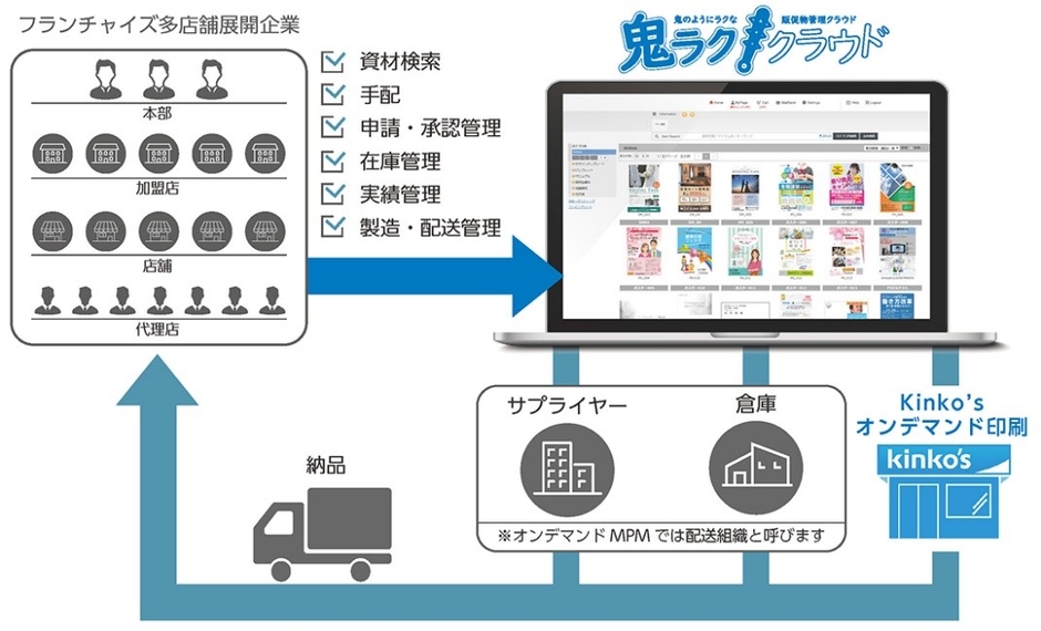 オンデマンドによるプリント、デジタルソリューションサービスを提供するキンコーズ・ジャパン株式会社(所在地:東京都港区、代表取締役社長:名取 久知、以下 キンコーズ)は、フランチャイズ企業向けに、少ない投資で大きなコスト削減を可能にする資材管理サービス「鬼ラク!クラウド」を2020年4月13日より提供いたします。