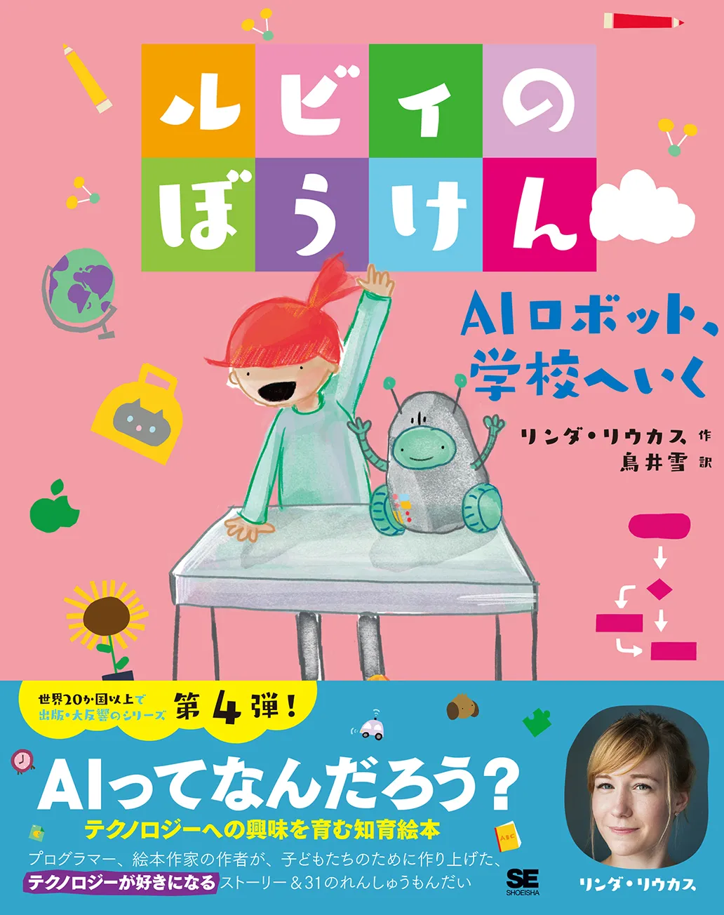 第4弾となる本書のテーマは「AI(人口知能)」。ルビィとクラスメートたちが、AIロボットと学校ですごしながら、AI(人工知能)や機械学習の世界を体感していくストーリーの「絵本パート」と、絵本で触れた概念や考え方をより深く体験するために、親子で遊びながら学べる「練習問題パート」を通じて、AI(人工知能)について学んでいきます。