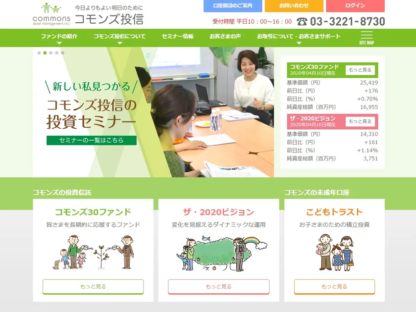 そしてこの度のコーポレートサイトのリニューアルを機に、投資先企業についてよりわかりやすく伝える『投資先企業一覧』、コモンズ投信の経営理念、お客様の声、セミナー情報ページの改装などデザインも新たに、セミナー以外の対面の場を持たない私たちと、日本全国のお客様の架け橋となるホームページとなりました。