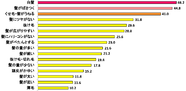 年齢を重ねるといろいろな部分に悩みが増えてくるもの。髪の悩みも例外ではありません。ポーラの調査によると、50歳以上の髪の悩みは、白髪、髪のツヤ、抜け毛、ハリコシ不足などの悩みが上位を占めます。カラーリングやヘアケア製品だけにとどまらず、ウィッグへのニーズもさらに掘り起こせると推察されます。