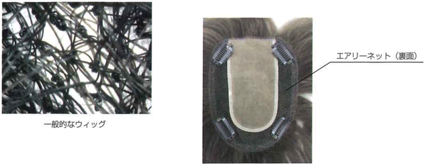 呼吸するような素肌感を実現するフェイクスキンネットの軽い素材感が実現しました。表面に結び目が出ない植毛方法のため、分け目が地毛のように自然です。