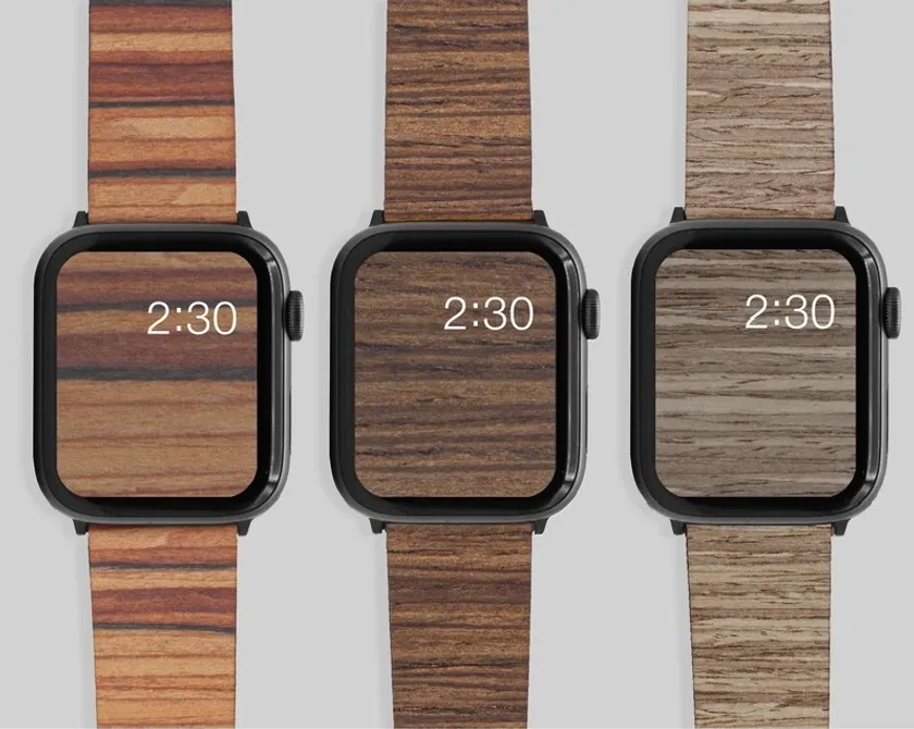 製品はローズウッド材、チーク材、ライトチーク材の3種類であり、今迄に販売された全てのアップルウォッチに対応しております。38/40mm用、及び42/44mm用を選択可能です。