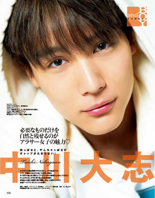 弟っぽさと、やんちゃっぽさのギャップがたまらない! 中川大志がandBOYに初登場♪ 『andGIRL 5月号』発売中!