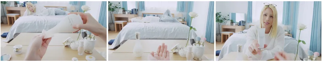 彼女の肌もいたわる優しい“白いローランド”は、デイクリームを自分の肌にも塗り、笑顔で振り返ります。