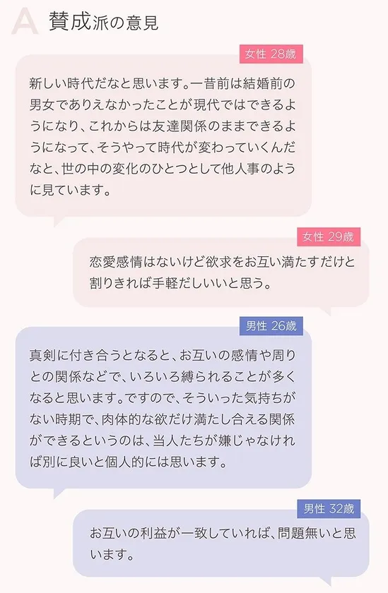 賛成派、反対派両方の意見を見ても、〇〇フレンドを満喫している人はまだまだ少数派のようです。