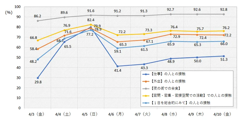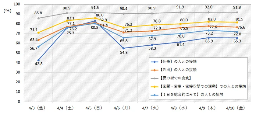 緊急事態宣言以降の『人との接触機会』の低減度を調査 4月6日~4月10日までの調査結果を公表