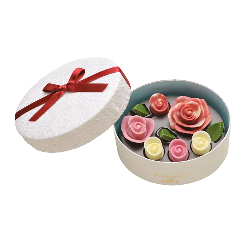 「メサージュ・ド・ローズ」は、2019年11月に30周年を記念して全面リニューアル。商品ラインナップやデザインを磨き上げ、母の日に向けた華やかで美しい薔薇のチョコレートを販売いたします。箱をあけた瞬間の驚きと笑顔をお届けするチョコレートギフトです。