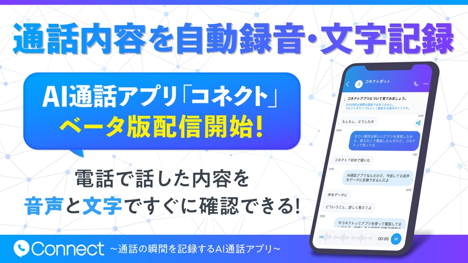 通話内容を自動録音・文字記録するAI通話アプリ「コネクト」がiOS版で先行配信開始!
