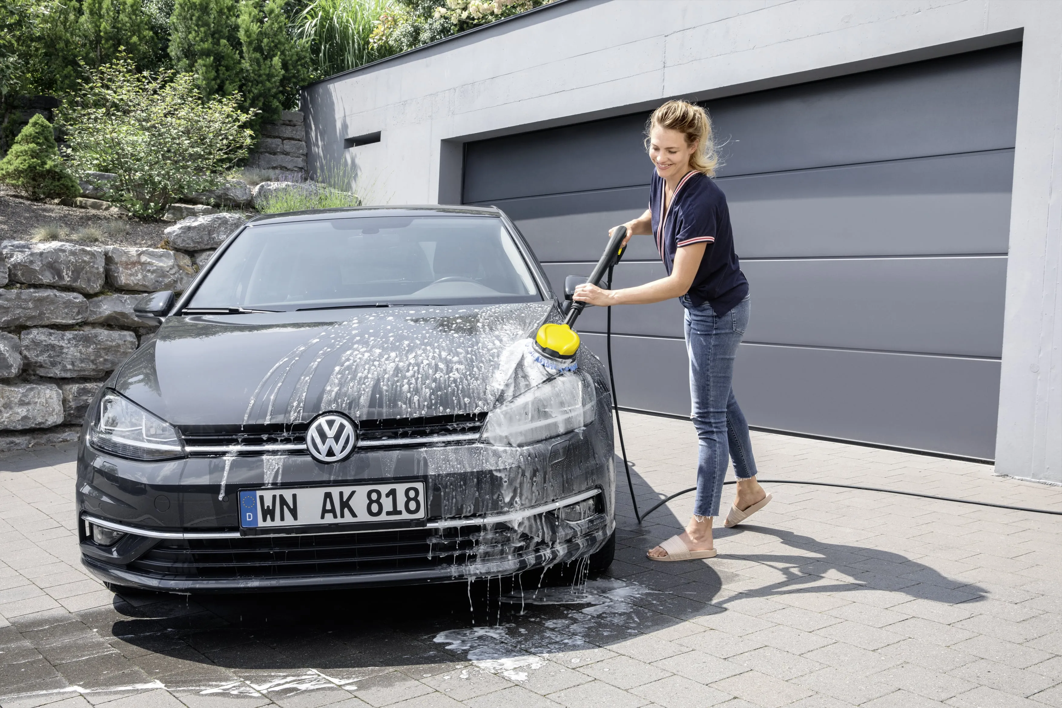 洗浄剤を出しながらゆっくりと回転するので、こする手間がかかりません。窓、車、外壁、ガーデン家具やガラスやプラスチック素材などに付着した軽い汚れの洗浄に適しているアクセサリーです。(K2~K 5に適合)
