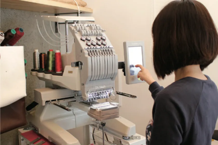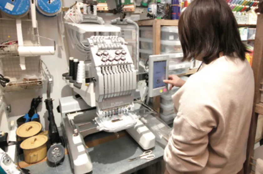 雑貨店から刺しゅうに特化したお店へとリニューアルした際に、もともと導入していたタジマの単頭機に加え、「TAJIMA SAI -彩-」を導入。限られたスペースでも設置しやすいコンパクトさ、リーズナブルな価格が決め手となった。用途によって使い分けており、「TAJIMA SAI -彩-」はタオルやハンカチ、帽子のネーム刺しゅうに利用、単頭機での持ち込みアイテムへの刺しゅうサービスも人気を集めている。生産効率が上がり、サービスの幅が広がったことで、売上が向上。立ち上がりが早いという利点をいかし、急ぎの作業に即座に対応している。