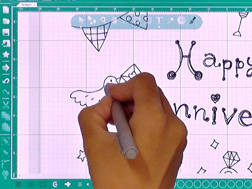 簡単な操作で、自分のイメージ通りに、オリジナルの刺しゅうデータを作成することができます。手描きの絵からもデータ作成が可能です。
