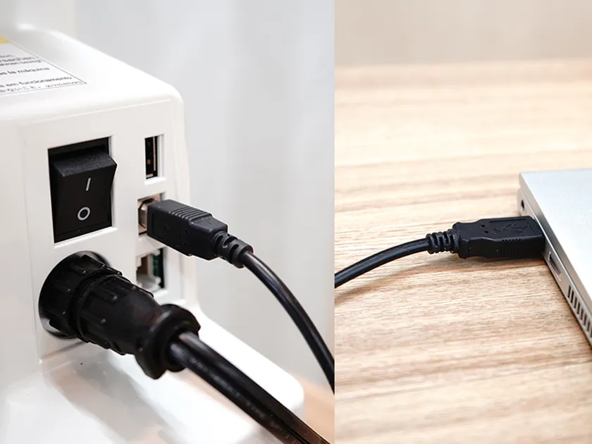 お持ちのパソコンと「TAJIMA SAI -彩-」をプリンターのようにUSBで接続可能。複雑な設定もなく、「Writer PLUS」で作成したデータを簡単に送信できます。
