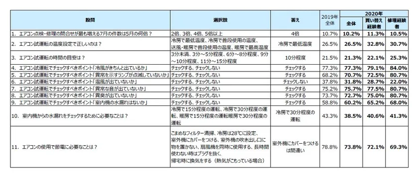 今年も夏を快適に過ごすための正しいエアコンの試運転方法を問う、「エアコンスイッチオンテスト」を実施。全体の正解率は平均51%となりました。5年以内にエアコンを買い替えた方、修理をした方は、比較的正解率が高い結果となっています。