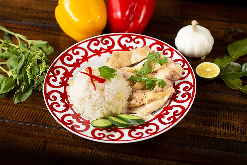 自家製の鶏ガラスープで米を炊き上げ、モチモチの鶏肉と自家製ソースを合わせてお召し上がり下さい。子供から大人まで愛される味に仕上げました。