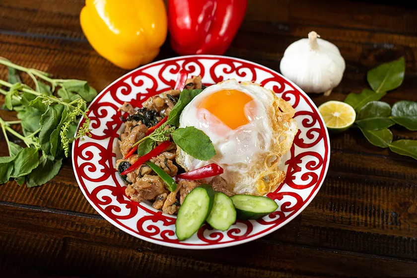 厳選した鶏肉を、ニンニク、唐辛子をガパオの葉と炒めたタイ本場の味。パリパリに焼いた目玉焼きとの相性が絶妙です。辛さは調整可能です。