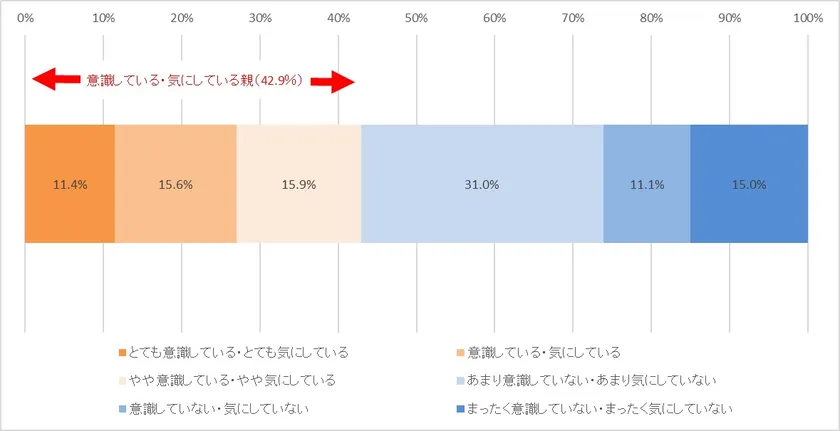 親に、子どものランドセルの背負い方を意識、または気にしているかを質問したところ、42.9%の親がランドセルの背負い方を意識している・気にしていると回答し【図6】、子供の姿勢、ランドセルの重さを気にする親の実情が明らかになりました。親が背負い方で意識している・気にしていることの1位は「背負ったとき、姿勢が悪くなっていないかどうか(42.5%)」、2位が「背負ったとき、肩ベルトが左右均等になっているかどうか(37.8%)」と特に重さからくるランドセルを背負ったときの子どもの姿勢を気にする親の実情が浮き彫りになりました【図7】。