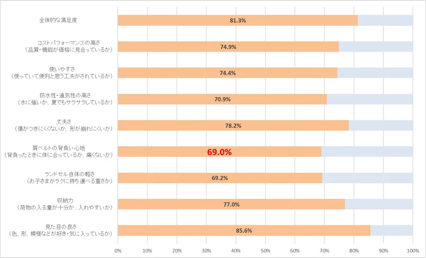 【図9】親のランドセルへの満足度 ※とても満足している、やや満足していると答えた人の割合