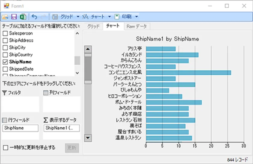 データの動的な視覚化や分析を可能にする「FlexPivot」で、「FlexChart」のパレットやスクロールバーなどが利用できるようになりました。