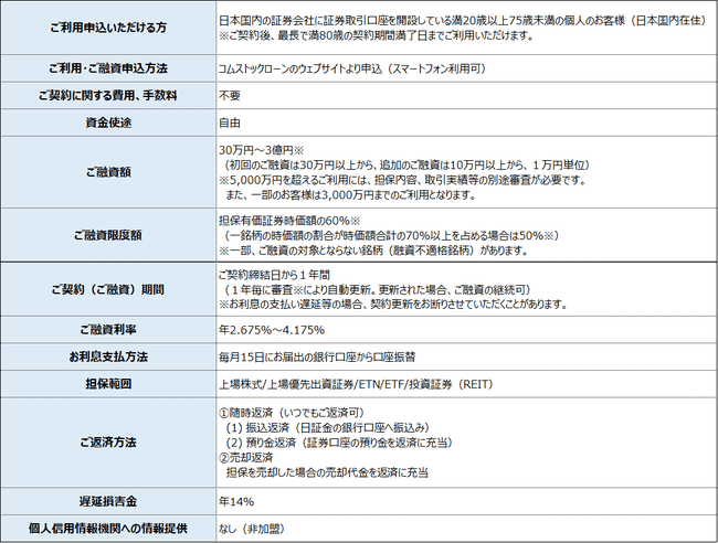 ●対象サービス:「コムストックローン・SBI証券」、「イージー・コムストックローン」、「コムストックローン・三菱UFJモルガン・スタンレー証券」、「新コムストックローン・野村證券」、「コムストックローン・ダイレクト」