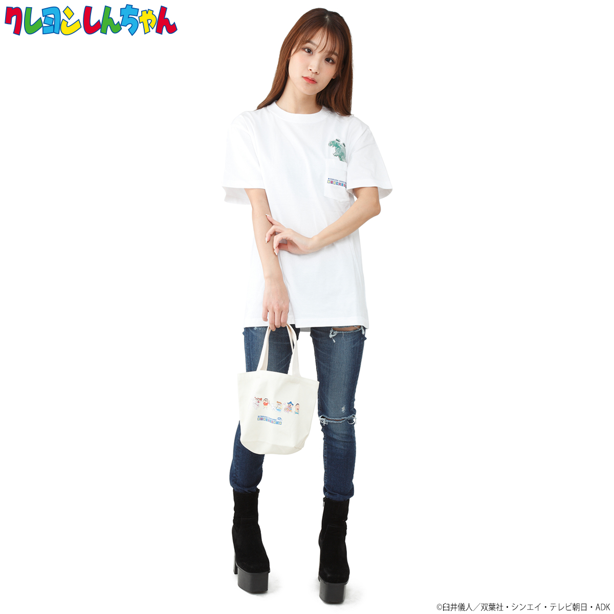 『クレヨンしんちゃん OMOCHABOKO ポケット付きTシャツ』は、しんちゃん、ひまわり&シロ、風間くん、マサオくん、ネネちゃん、ボーちゃんの全6種展開です。胸のポケットにそれぞれのお気に入りのアイテムが入っているようにデザインされており、背面にはそれぞれのイラストと名前がプリントされています。サイズは4サイズ展開です。
