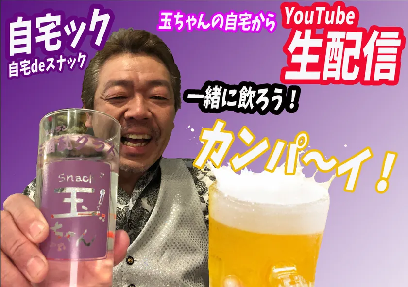 玉ちゃんが外出自粛を守り、自宅で飲む様子を皆様にお届けし、更にはコメントにて皆様にも参加していただき、会話しながら楽しい【おうち時間】を過ごそうという内容。