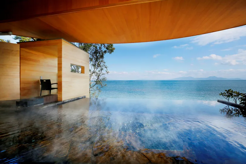 有明海を一望できる海と空につながるインフィニティ露天風呂