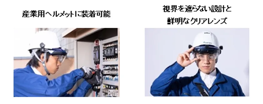 作業者の安全や作業視野を確保するためにクリアレンズを採用。装着時の作業性に寄与