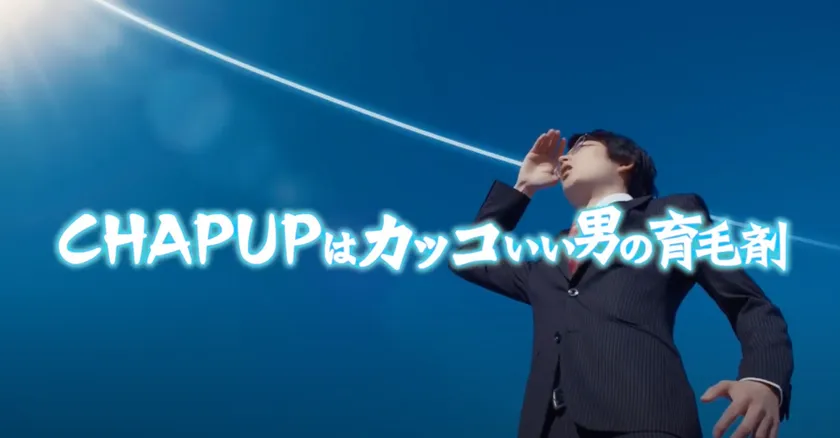 チャップアップ育毛剤は、5つの育毛有効成分に加え、頭皮の健康をサポートする天然成分55種・アミノ酸15種を独自に配合した無添加※の育毛剤です。薄毛でお悩みの方はもちろん、薄毛を予防したい方にもオススメ。本CMには、「(これまでは)薄毛の人だけが育毛剤を使っていたけれど、(これからは)薄毛にならないためにケアすることがカッコいい時代である」というメッセージが込められています。