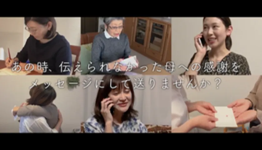 本ドキュメンタリームービーは、「伝えられなかった母への感謝」をテーマに、各家庭で撮影いただいた“サプライズで感謝の想いを届ける様子”を集めて作成しました。登場するのは、子どもが成人して子育てが一段落した“卒母”や、小さい子どもを育てる“育児ママ”。離れて暮らす方、同居している方など環境は様々ですが、ビデオ通話や、直接渡すなど、あの時伝えられなかった感謝の想いを手紙に綴り、母親へ届けています。直接会っても、会えなくても、母親の顔を見ながら想いを伝え、母との絆の深さを改めて感じるきっかけとなる内容になっています。今年の母の日は、恥ずかしかったり、タイミングを逃したり、時が過ぎても「伝えられなかった母への感謝」の想いをメッセージにして贈ってみてはいかがでしょうか。