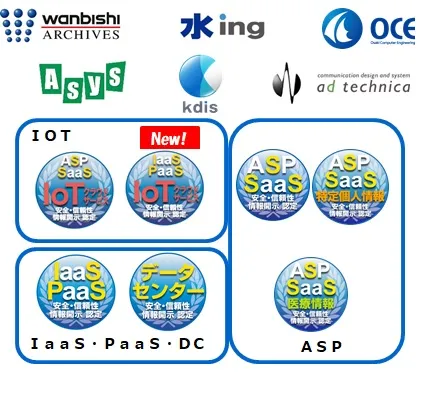 新規認定会社ロゴとクラウドサービス安全・信頼性情報開示認定制度認定マーク