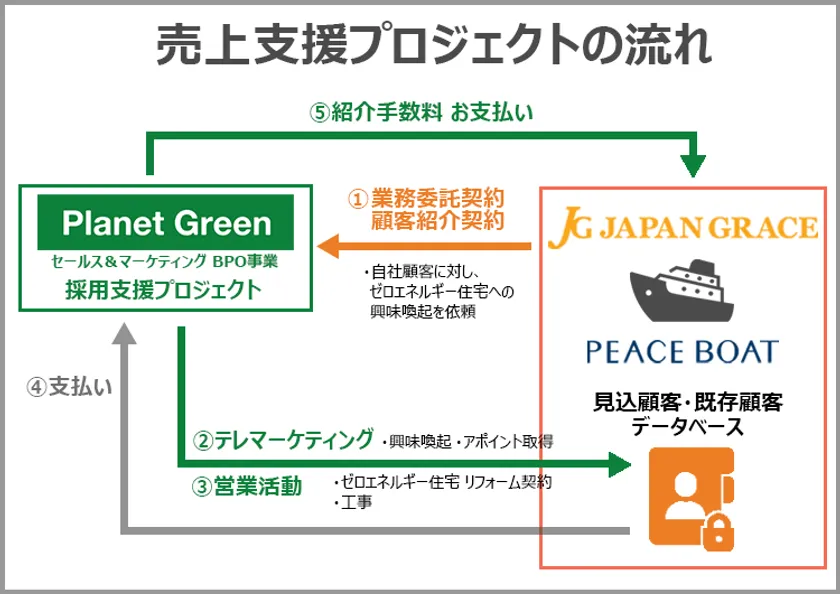 ・プラネットグリーンは、ジャパングレイスの顧客に対し、ゼロエネルギー住宅へのリフォームのテレマーケティング・営業活動を実施します。