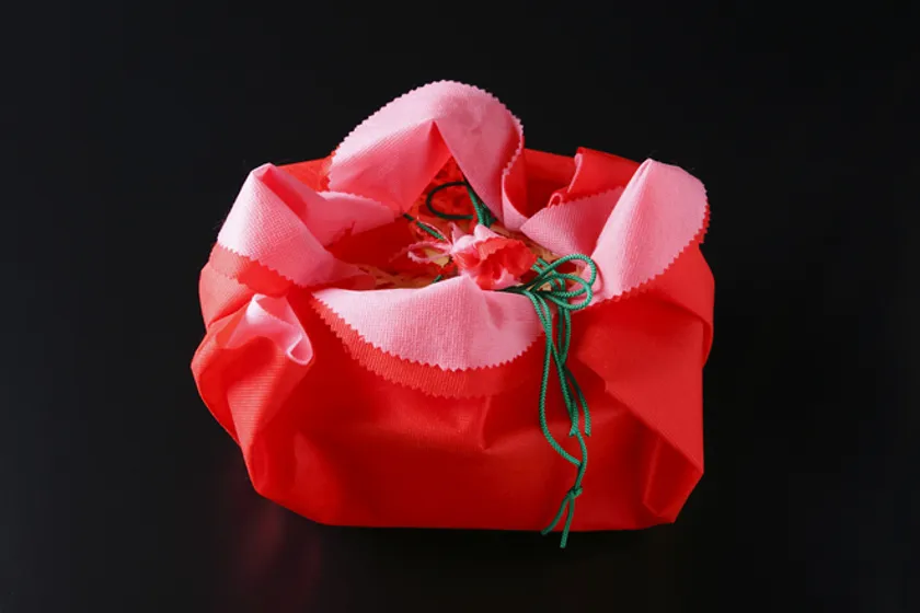 魚万の地元・奈良で活躍する絵師の糸井 忠晴氏による、温かみのある絵言葉ポストカードをセット。また、カーネーションの花をイメージした特製ラッピングは奈良生まれの不織布ラッピング「大和Furoshiki花しょうぶ」を使用しています。