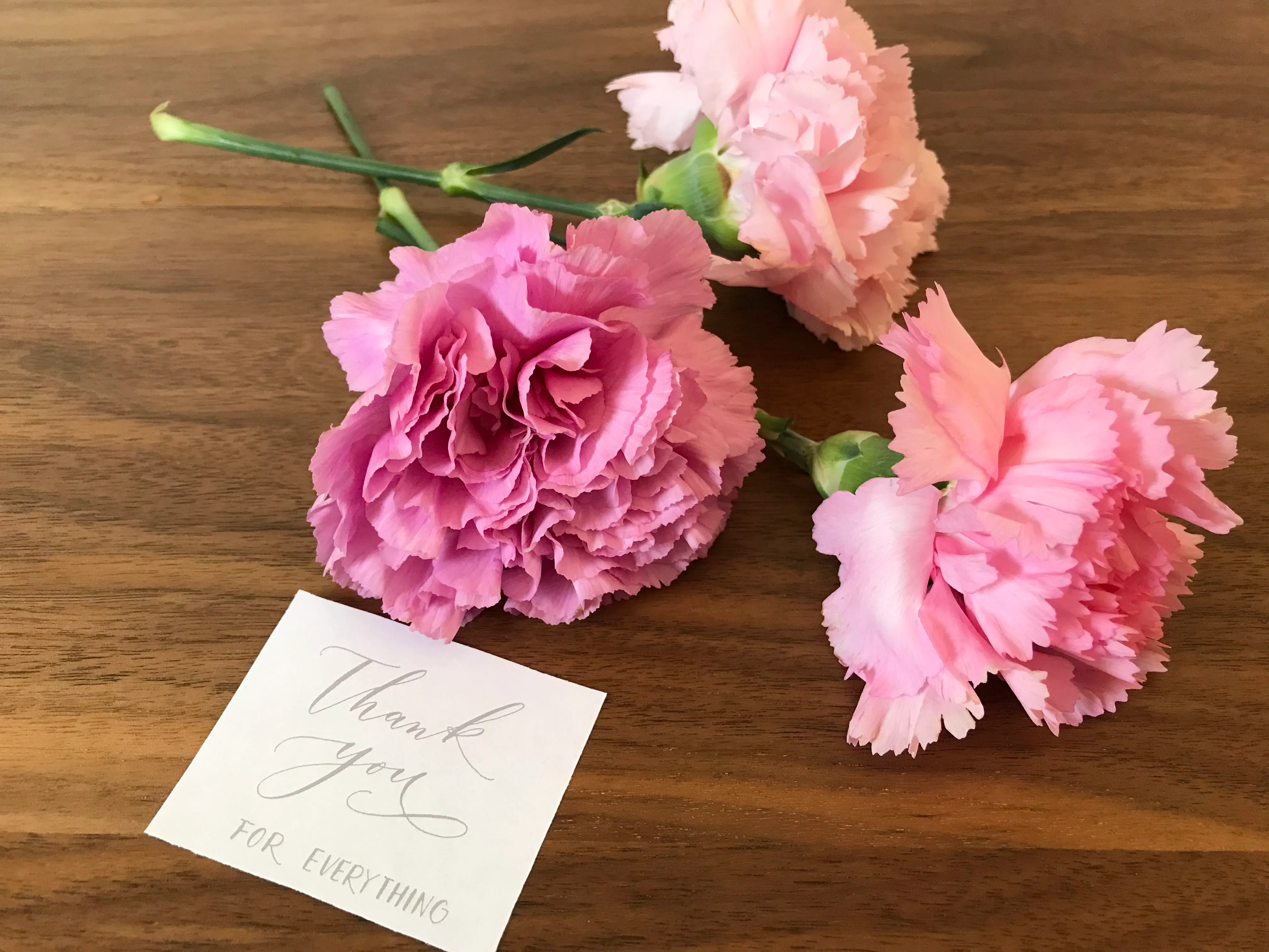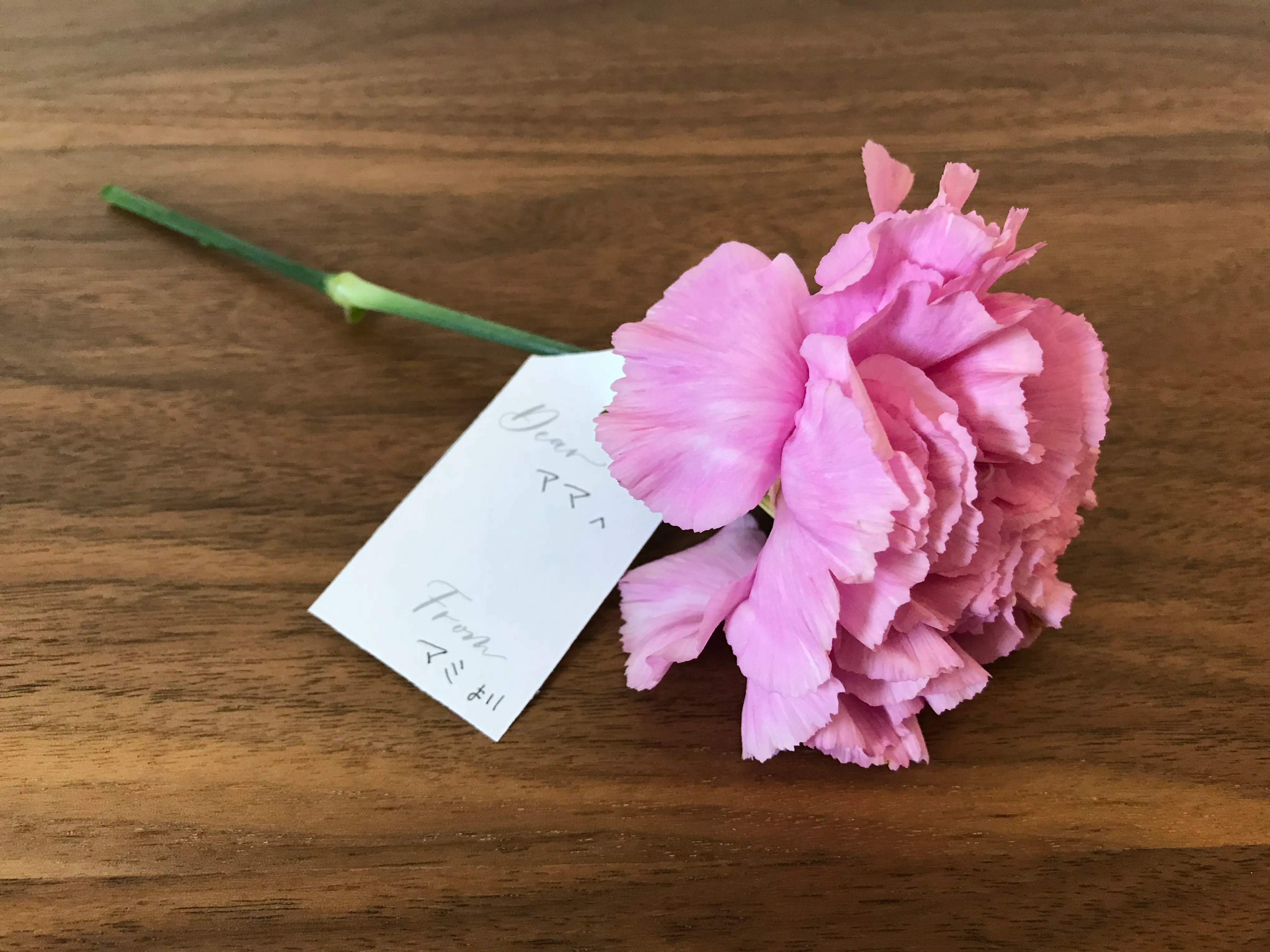 ピンク色のカーネーションの花言葉は「あたたかい心・感謝」。