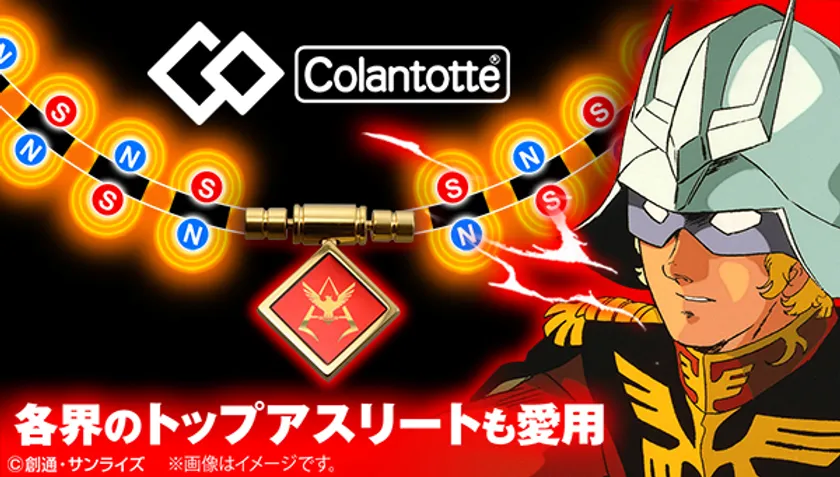 本商品は、アニメ『機動戦士ガンダム』の人気キャラクター“シャア・アズナブル”をモチーフにした「磁気ネックレス」です。医療機器メーカーである「コラントッテ」と『機動戦士ガンダム』がコラボレーション。医療機器認証され、多くのアスリートにも愛されている本格磁気ネックレスがコラボ限定のデザインで登場です。