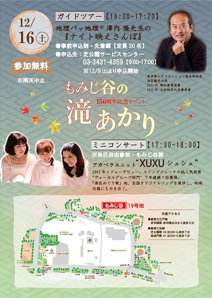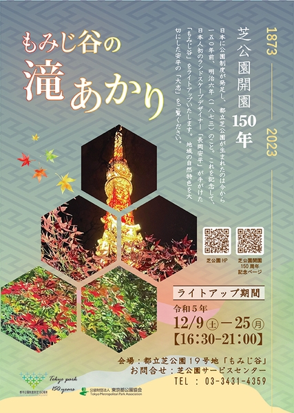 【芝公園】都立芝公園開園150周年記念ライトアップ『もみじ谷の滝あかり』開催!