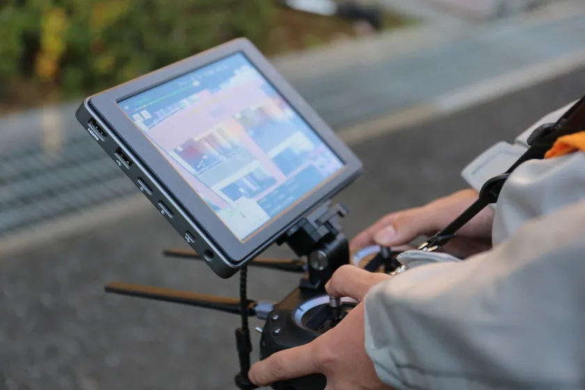 赤外線カメラ搭載のドローンを用い、動物の体温を検知し居場所を特定します。