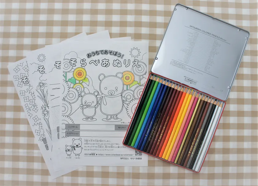 そらべあのぬりえを楽しんで、家族にエコアクションを宣言し、実行することで、おうち時間が長くなった昨今の家庭でできるエコ活動を促進します。