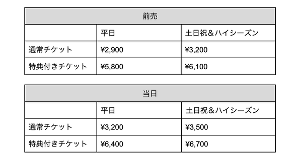 ※ハイシーズンとはGW、年末年始、夏季休暇などを含む大型連休期間を想定しております。金額をご確認の上、チケットのご購入をお願いいたします。