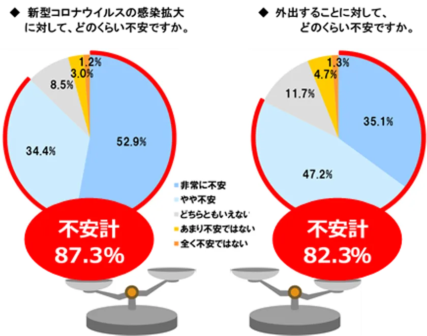 ■新型コロナウイルス感染不安・外出不安は8割超