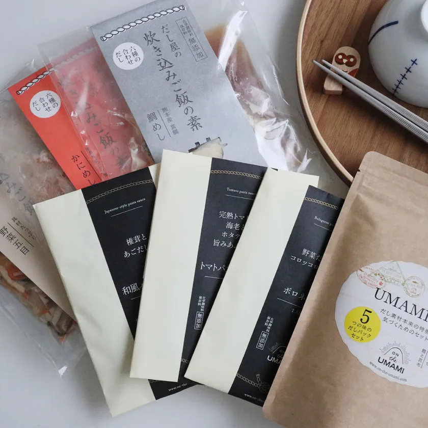 当社が展開する、“UMAMIを軸に広がるライフスタイル”を提案する「ON THE UMAMI」でも各地で予定しておりました催事イベントが中止となり、行き場をなくした商品を巣ごもり需要でおうちごはんが多くなっているご家庭に向け、その在庫をお得に消費していただこうと、業務用のおだしセットは、「巣ごもり応援セット」として、ON THE UMAMIの商品は「おうちごはん応援セット」として、期間限定でお得に提供販売を開始いたしました。