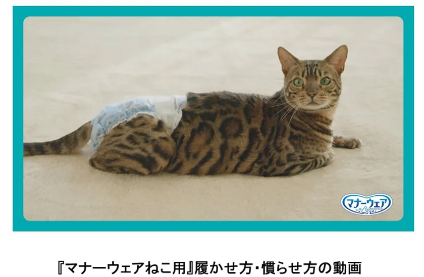 『マナーウェアねこ用』は、ねこ特有の体型や柔軟な動きに対応し、排泄トラブルを解決する“ねこ用吸収ウェア”です。愛猫と飼い主様に快適に過ごしていただくため、「マナーウェアねこ用」を初めて使用する飼い主様向けに、適切な履かせ方や慣らせ方のコツを分かり易く解説した動画を公開しています。