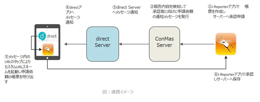 私どもは、「現場帳票」ペーパーレス ソリューション『ConMas i-Reporter』と現場の働き方改革を支援するビジネスチャット『direct』の連携を心から歓迎いたします。